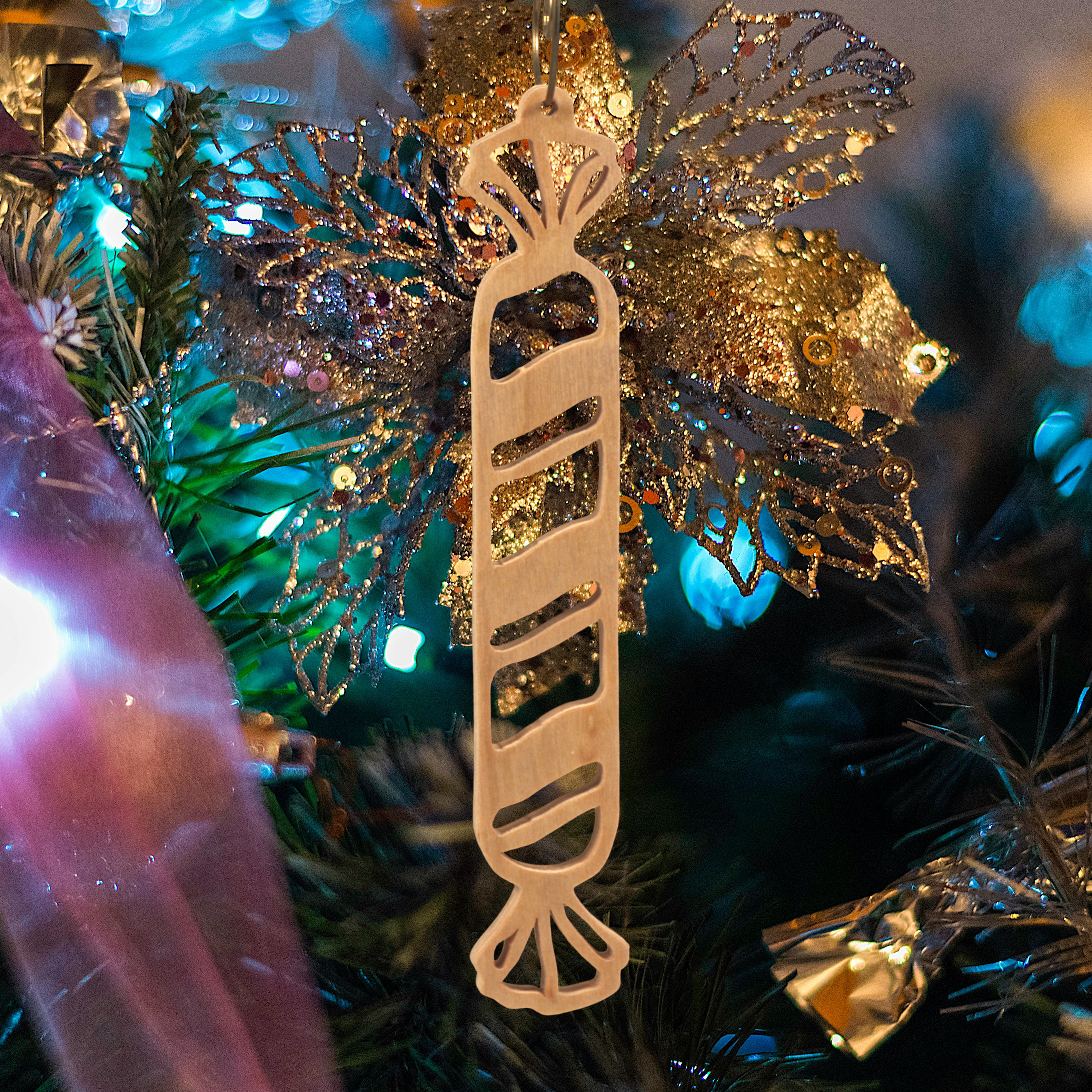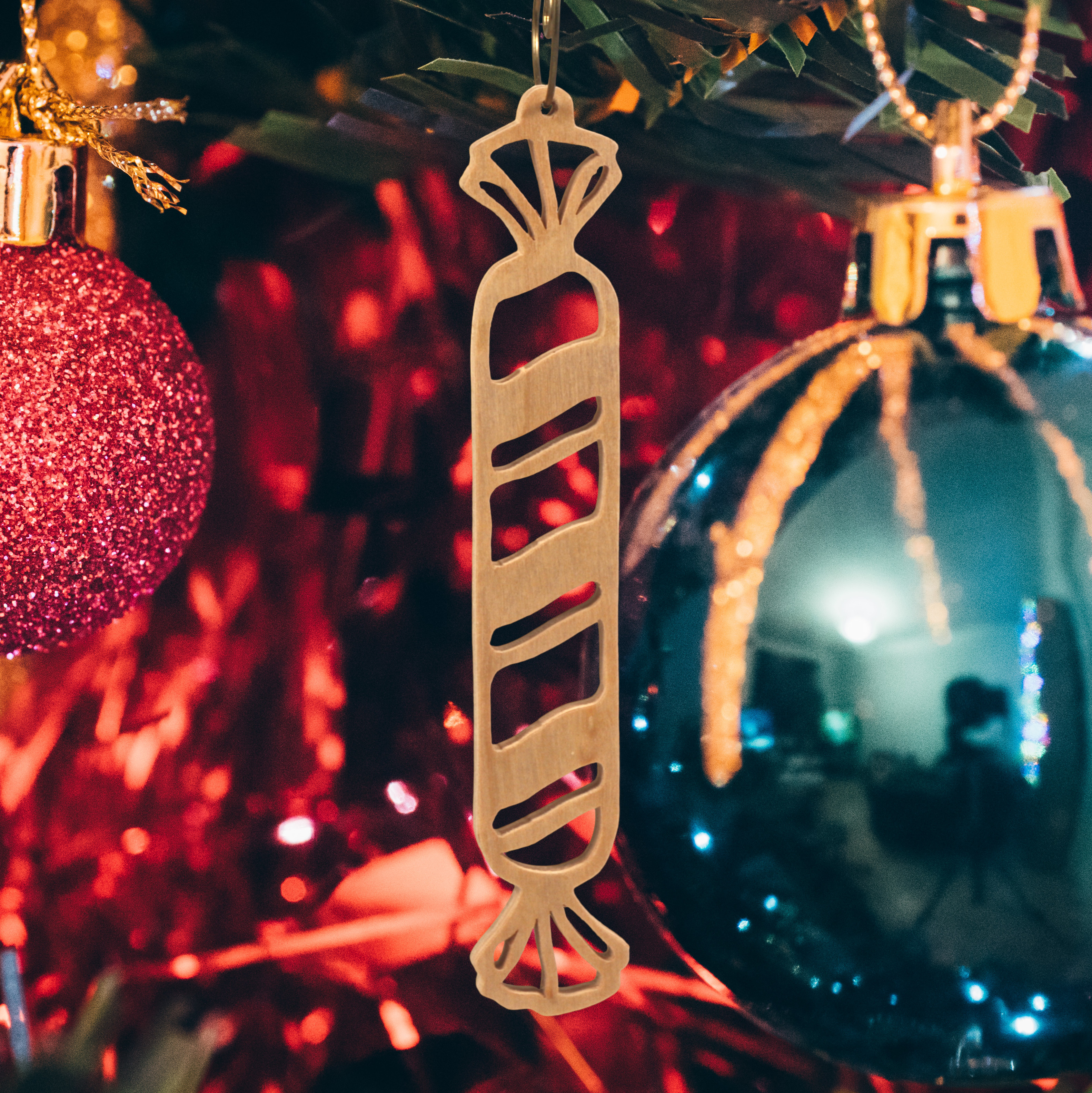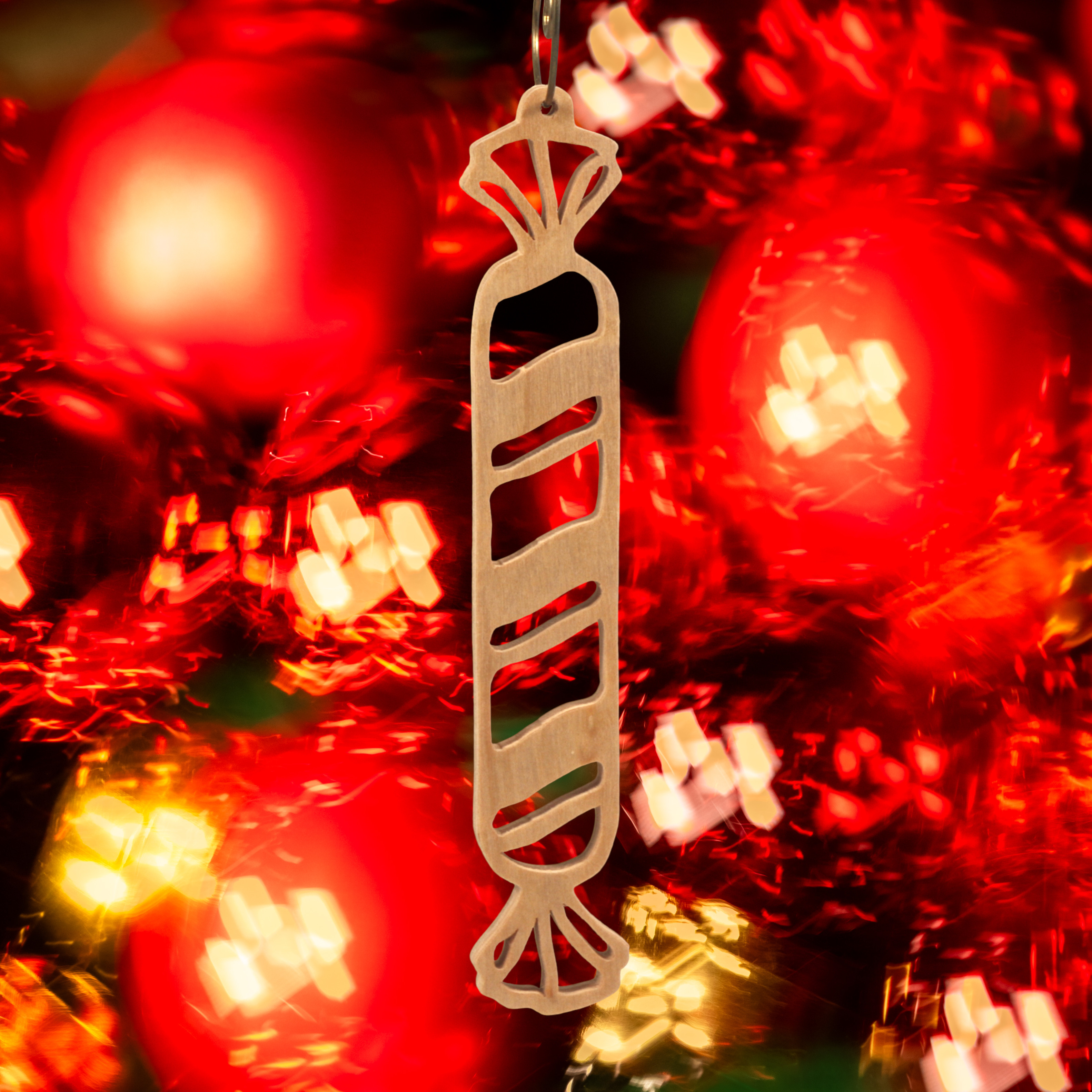 Bring a touch of festive charm to your holiday decorations with our handcrafted wooden Christmas tree ornament, beautifully designed in the shape of a classic peppermint stick.