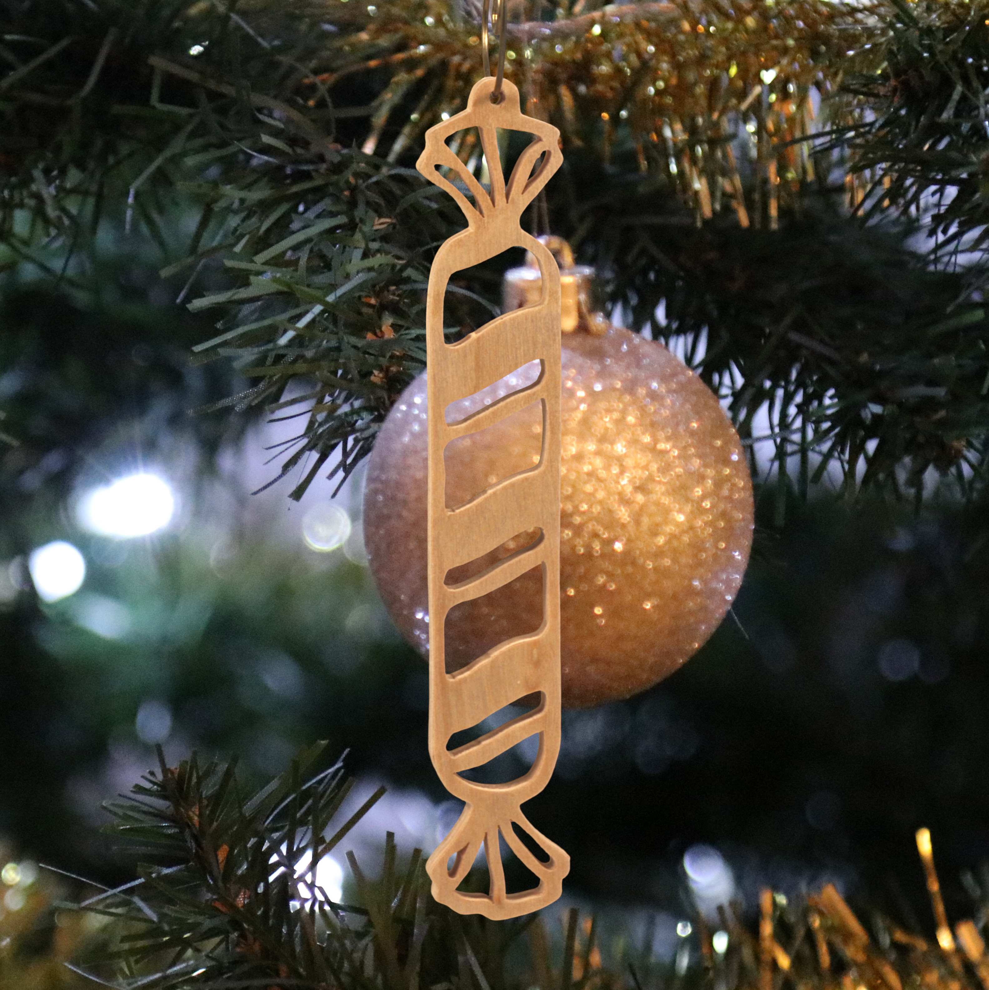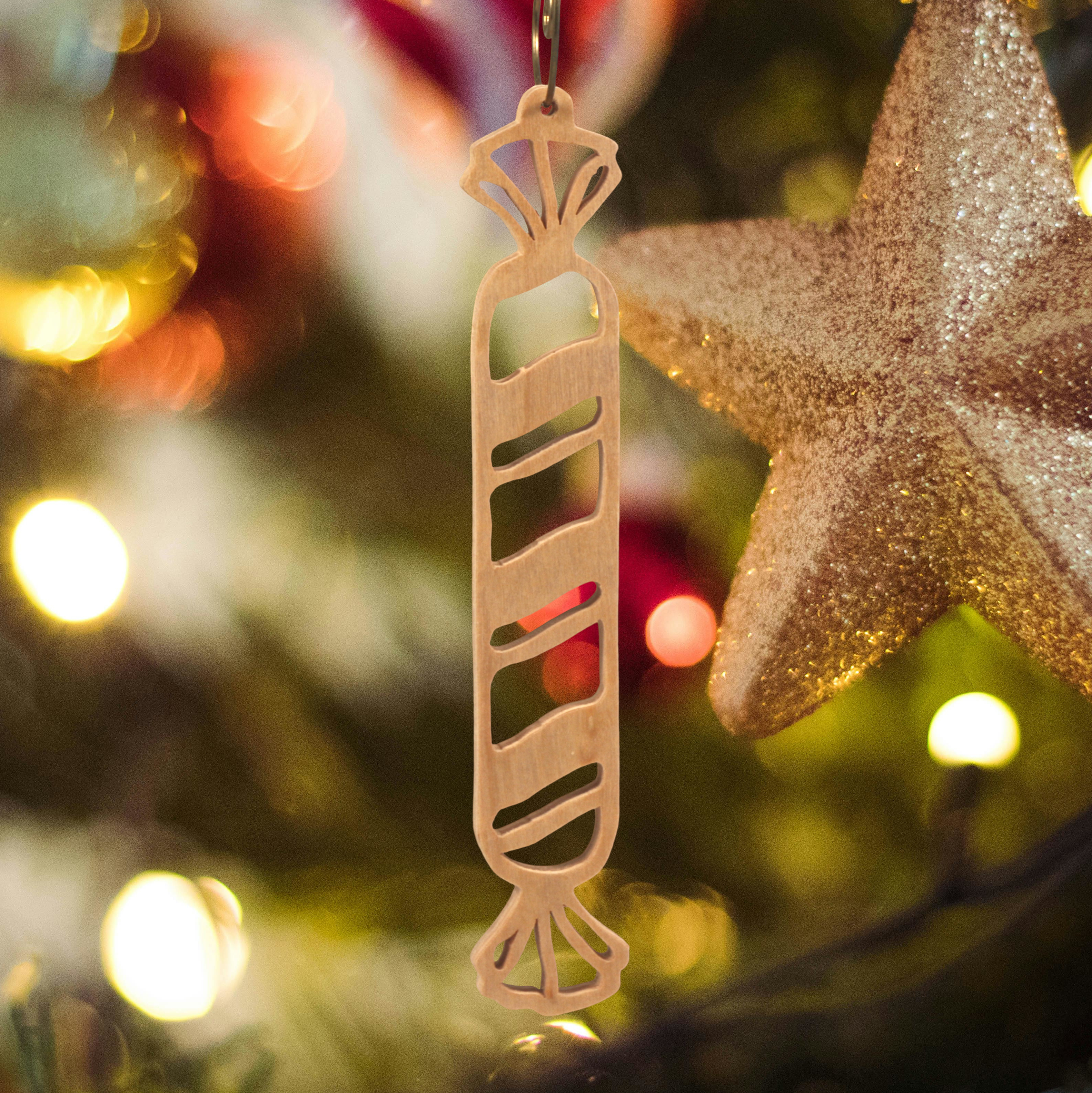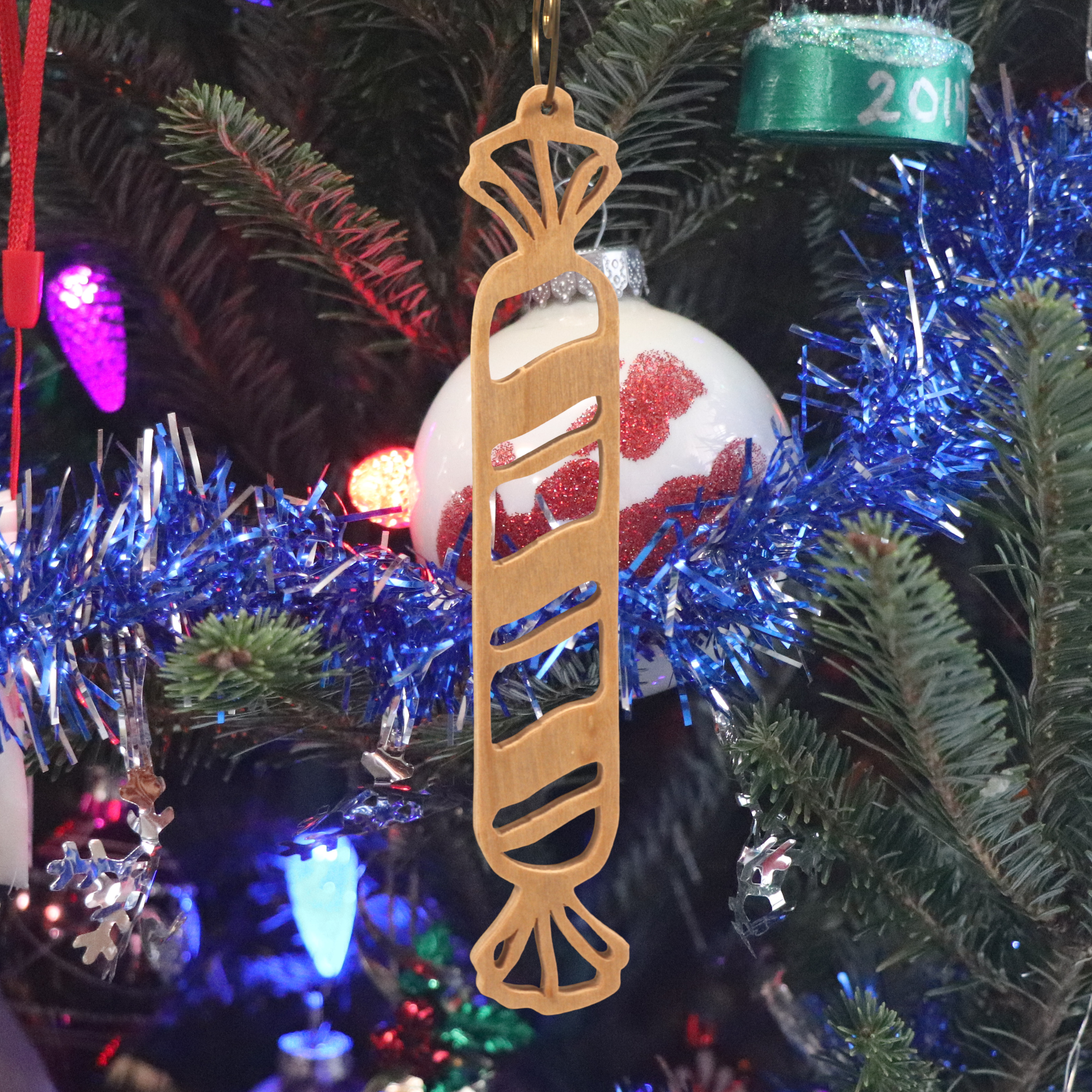 Bring a touch of festive charm to your holiday decorations with our handcrafted wooden Christmas tree ornament, beautifully designed in the shape of a classic peppermint stick.
