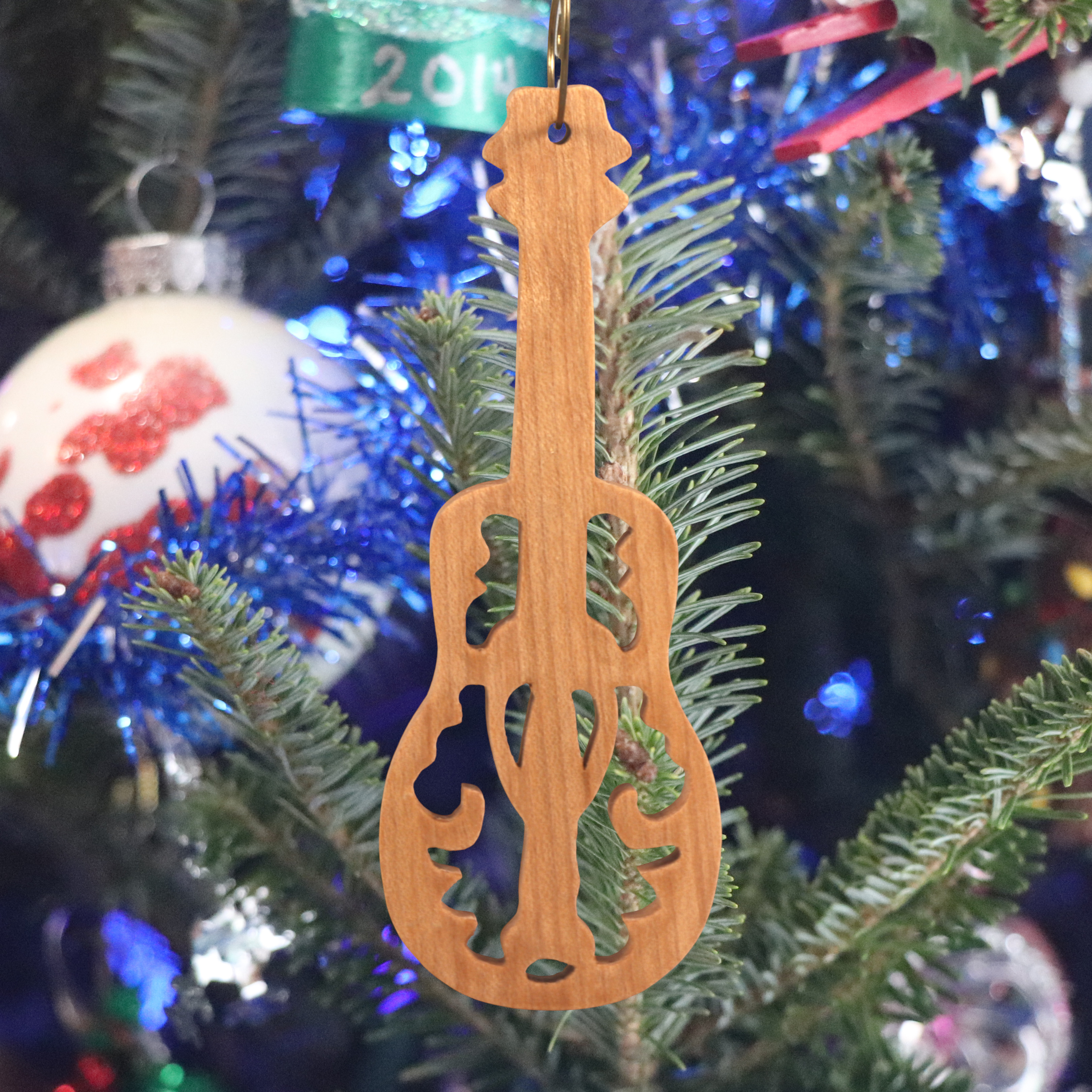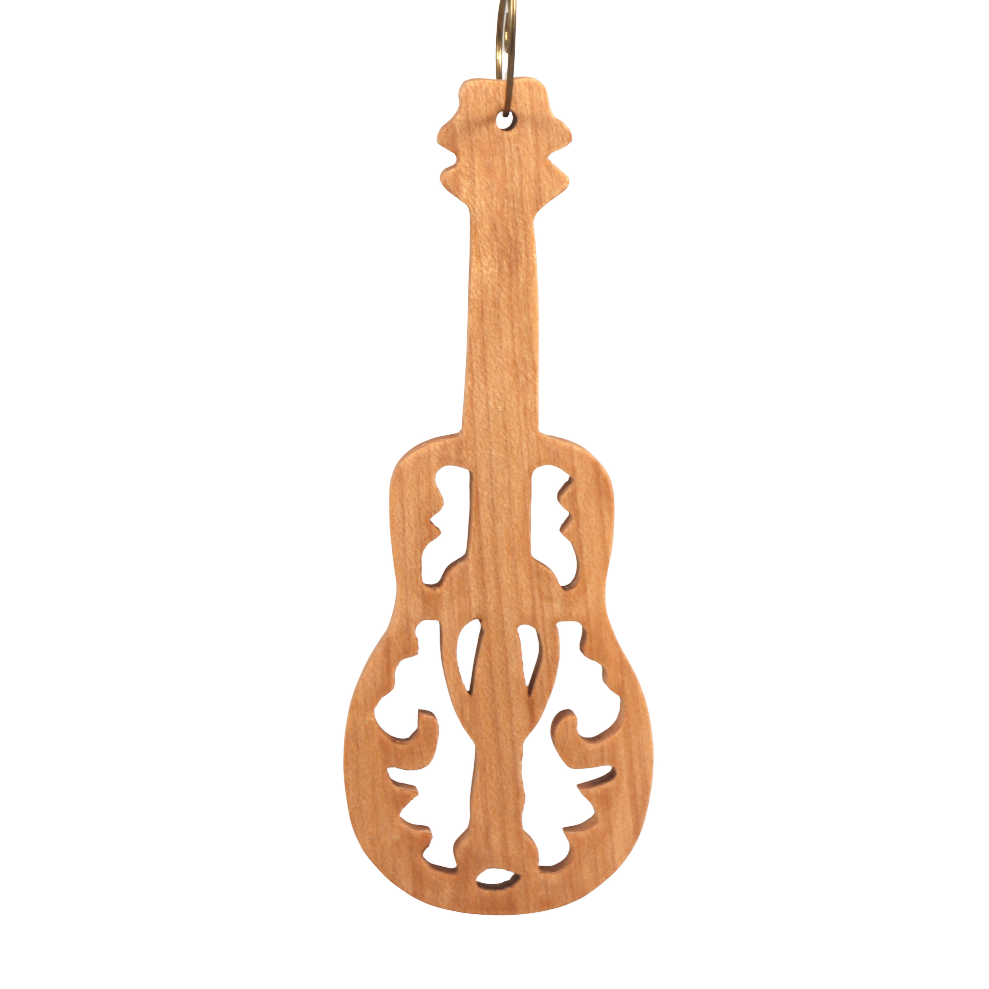 Crafted with Care: Each ornament is meticulously hand-cut from solid hardwood, boasting a slim 0.25-inch thickness that ensures lightweight elegance without sacrificing durability. The intricate cutout design reveals a stylized ukulele body with graceful curves and fretboard details, showcasing the natural beauty of the wood grain. Finished by hand with a smooth layer of clear shellac, it gleams with a subtle, protective sheen that highlights every contour while preserving the wood's warm, organic tones—no two pieces are exactly alike, making yours truly one of a kind.