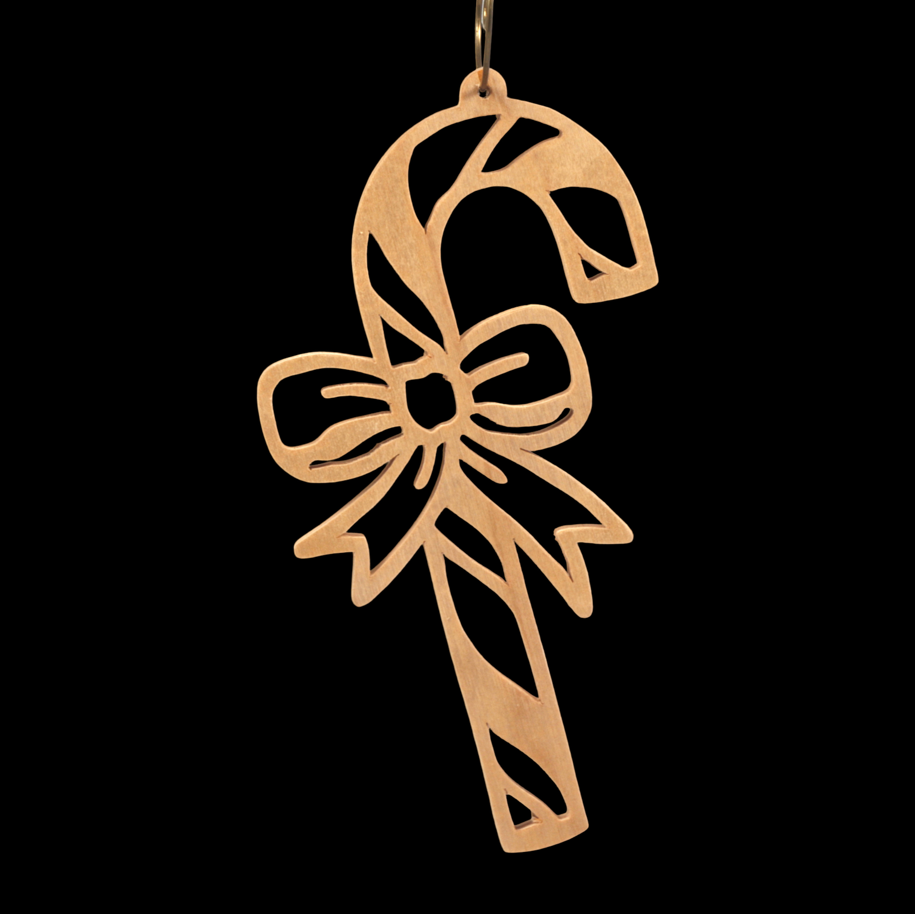 Bring a touch of festive charm to your holiday decorations with our handcrafted wooden Christmas tree ornament, beautifully designed in the shape of a classic candy cane ornament.