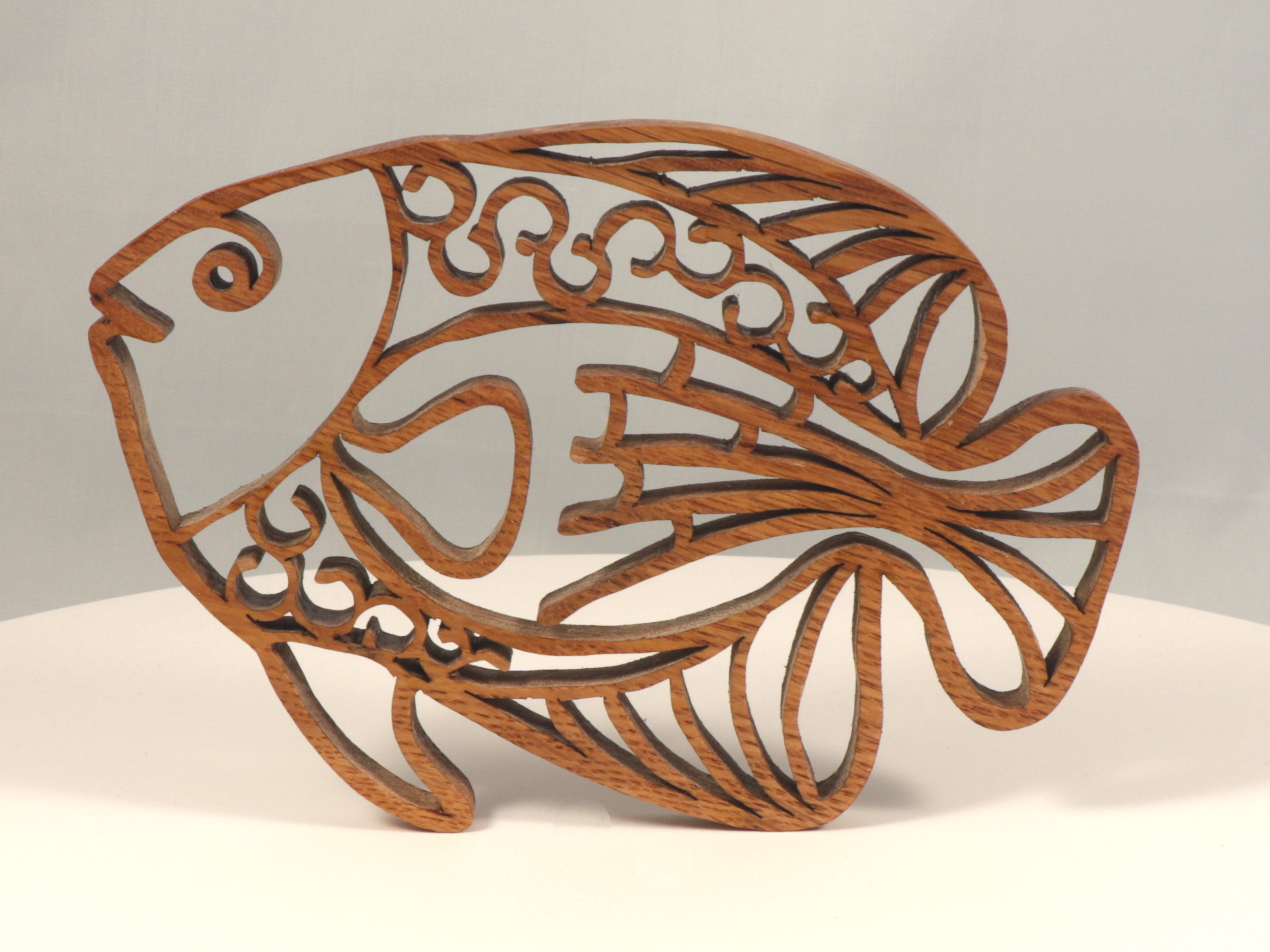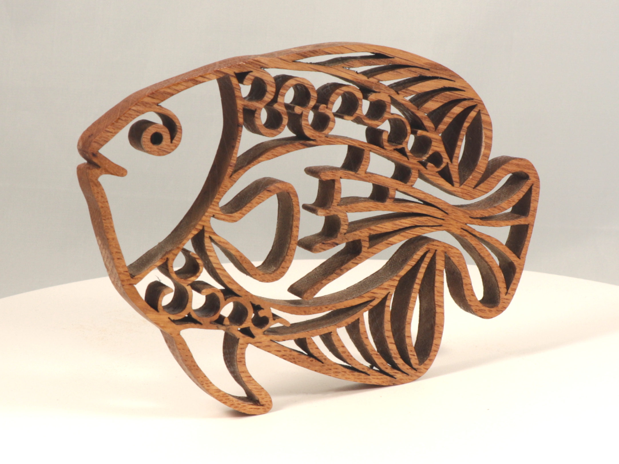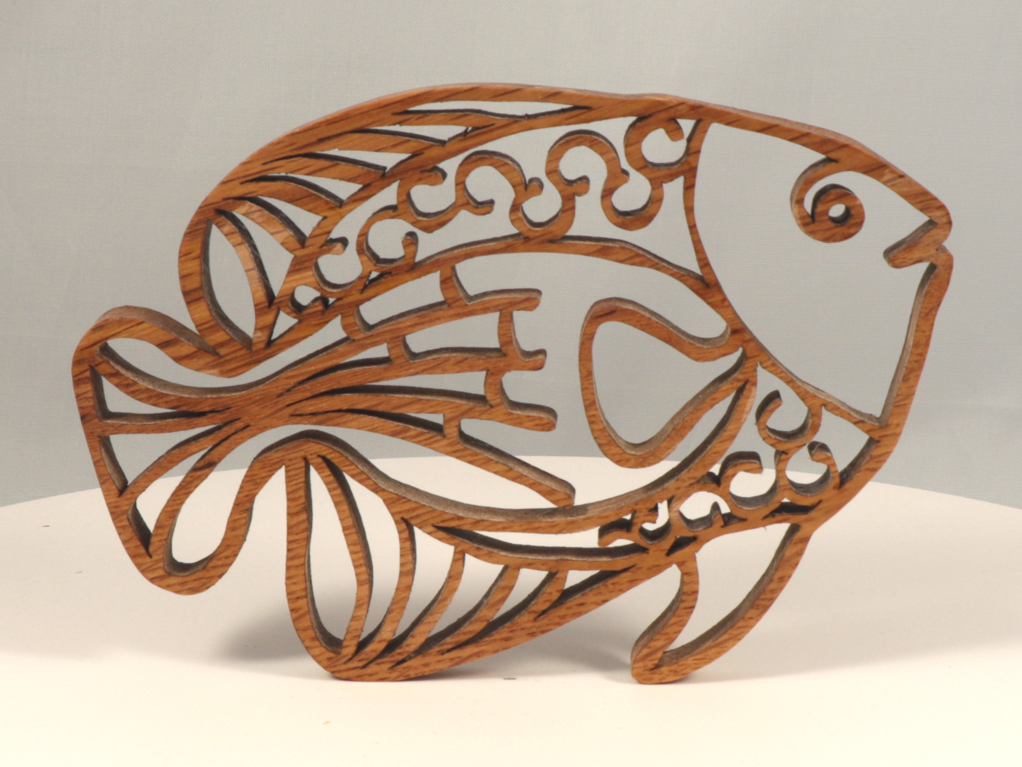 I handcrafted this Tropical Fish ornament using my scroll saw. It is cut from high-quality 1/4-inch thick oak wood and finished with shellac.