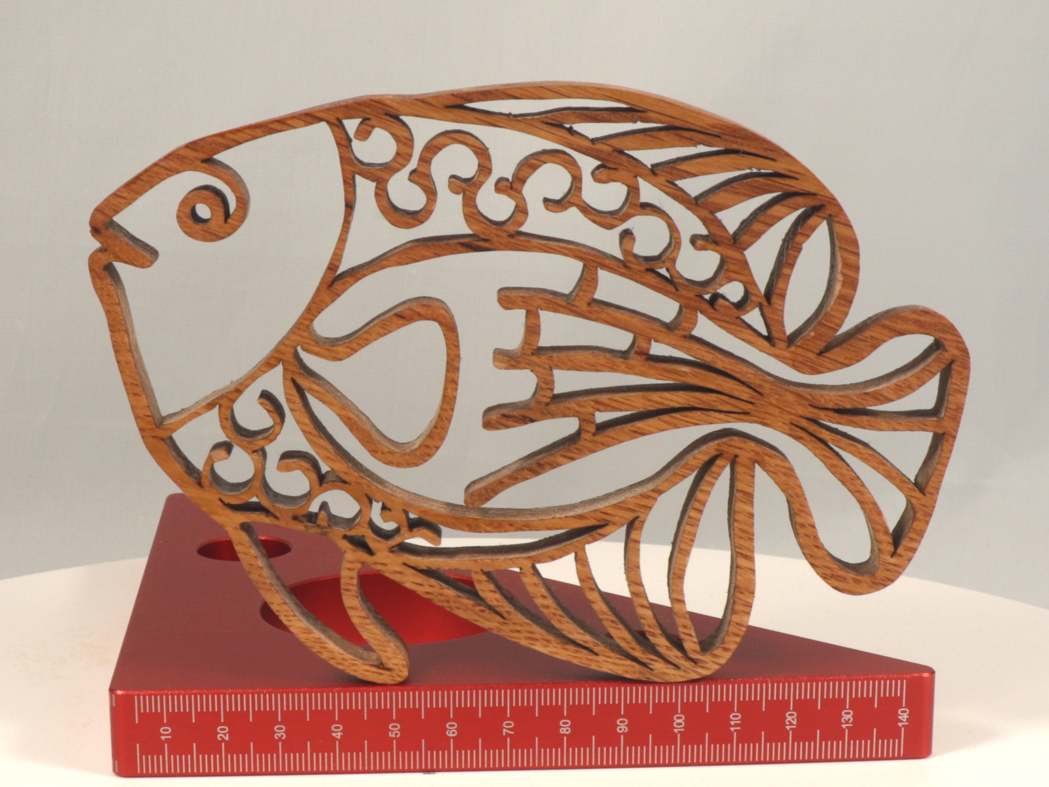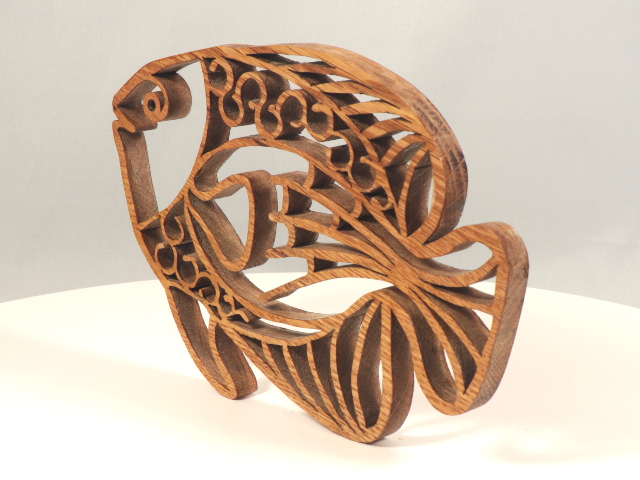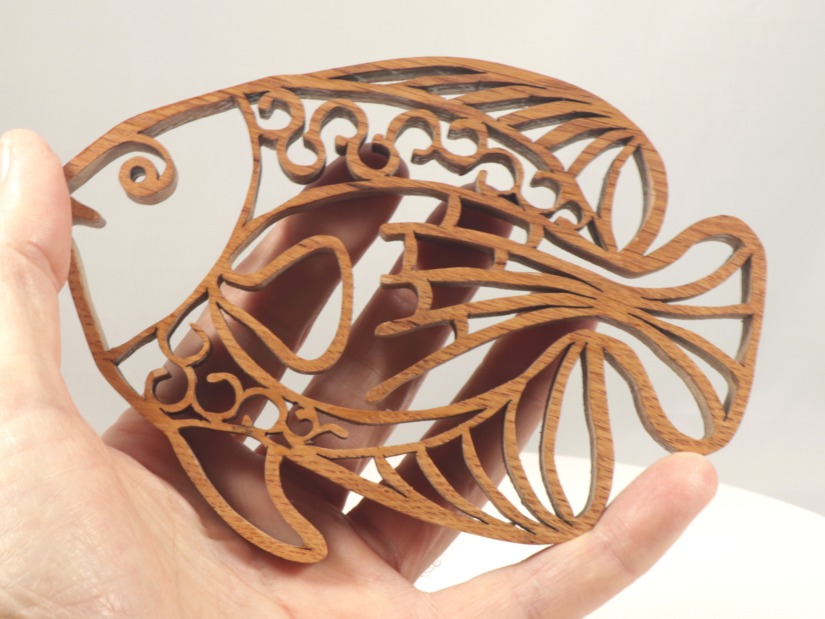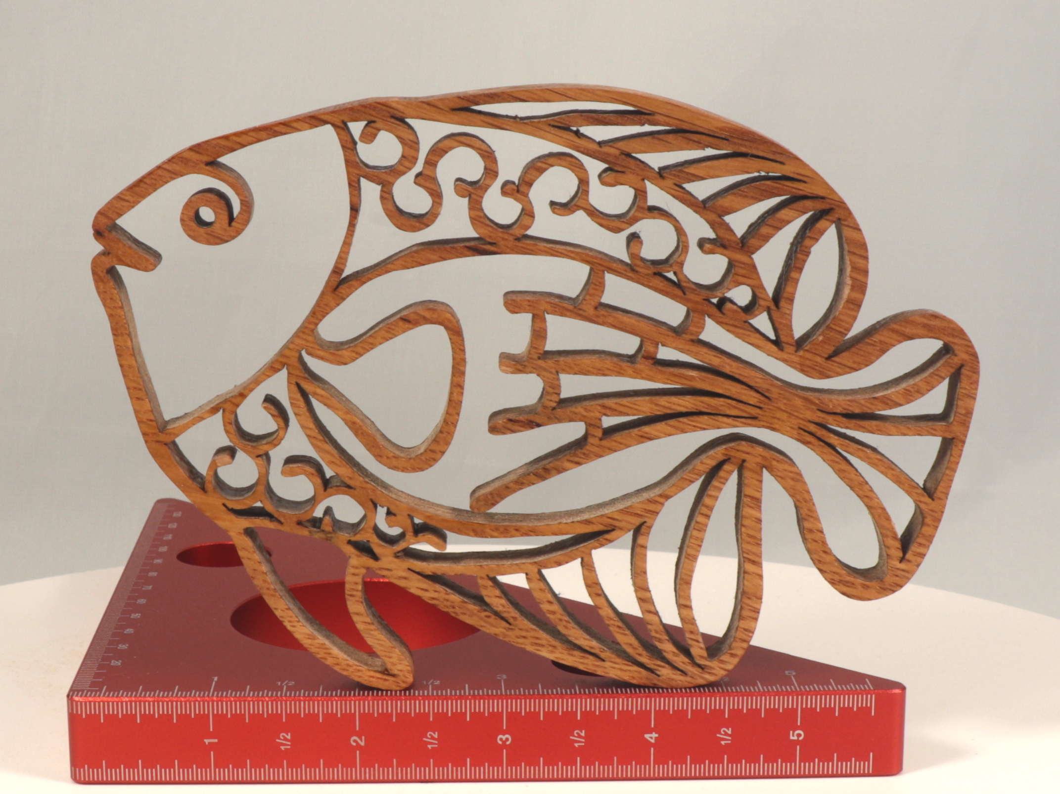 I handcrafted this Tropical Fish ornament using my scroll saw. It is cut from high-quality 1/4-inch thick oak wood and finished with shellac.